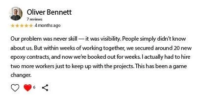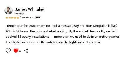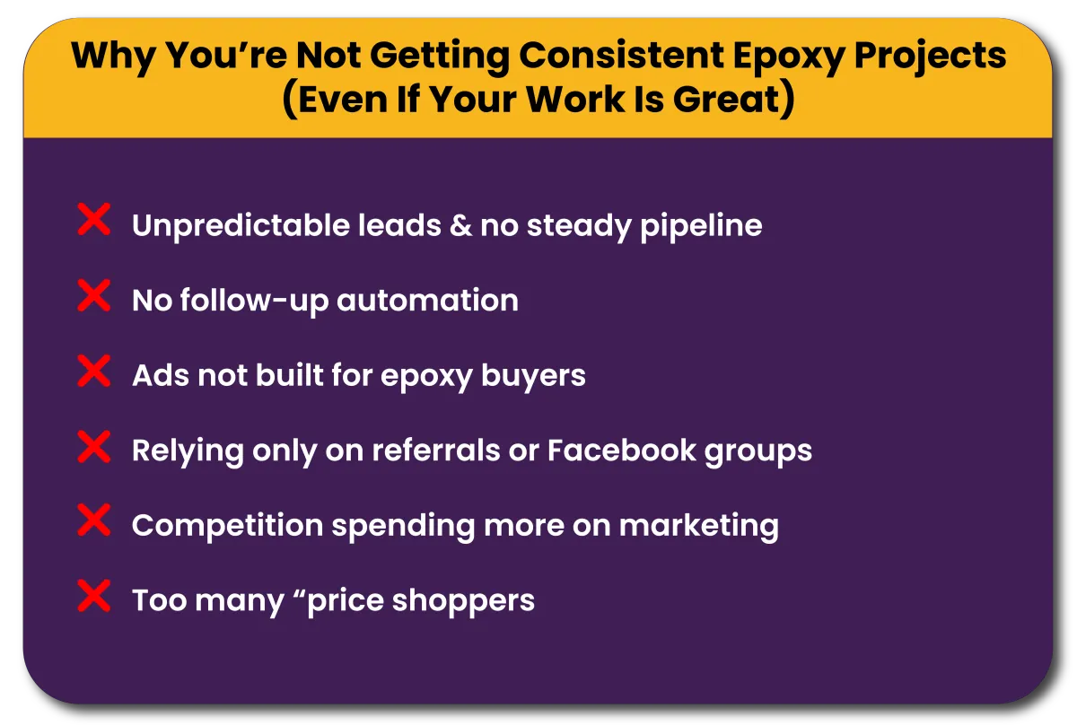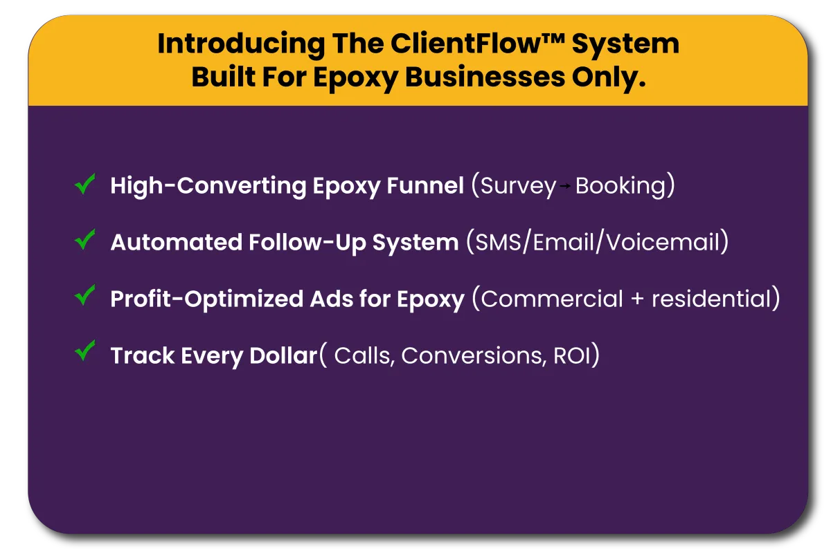 We help established epoxy flooring contractors build a predictable lead system,without relying on referrals, cold calls, or Facebook boosts.